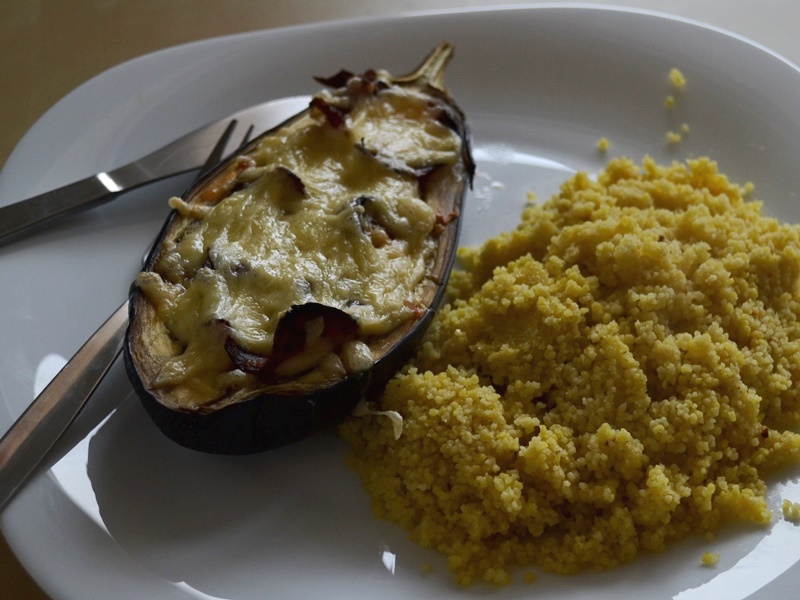 Lilky podélně rozřízneme, lehce posolíme a necháme pustit vodu. Do lilku uděláme tři podélné zářezy, které naplníme směsí oleje, lisovaného česneku a koření (dle chuti). Na vrch dáme slaninu a pečeme v předehřáté troubě na 200°C cca 30-45 minut. Těsně před dopečením ještě posypome strouhaným sýrem a necháme zapéct. Výborný je s cous cousem.